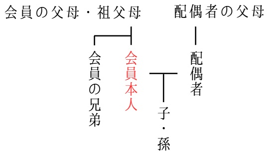 - 会員特典を受けられる範囲は会員特典対象図に示す2親等以内の親族とする。
