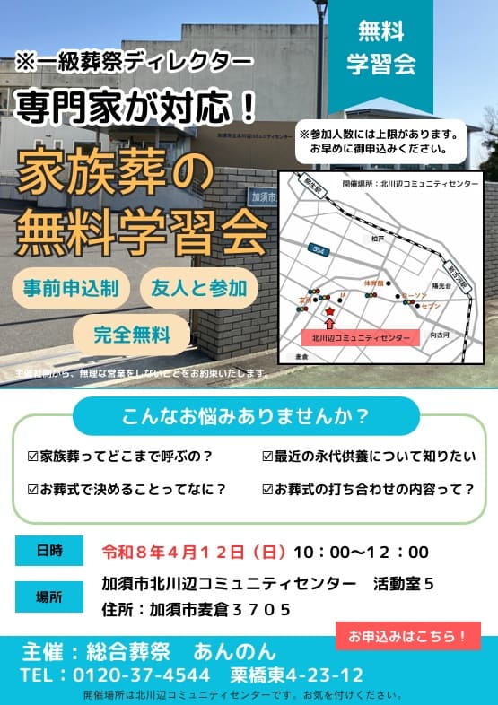 令和8年4月12日(日) 加須市北川辺コミュニティセンター
